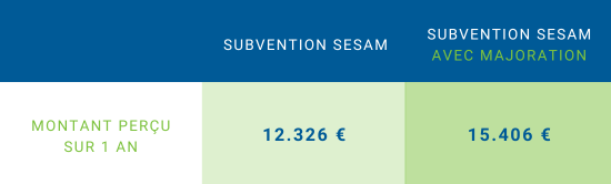 Voici un tableau récapitulatif, reprenant les montants obtenus (avec ou sans majoration) pendant l'année du plan SESAM, en considérant l'engagement d'un travailleur à temps plein :